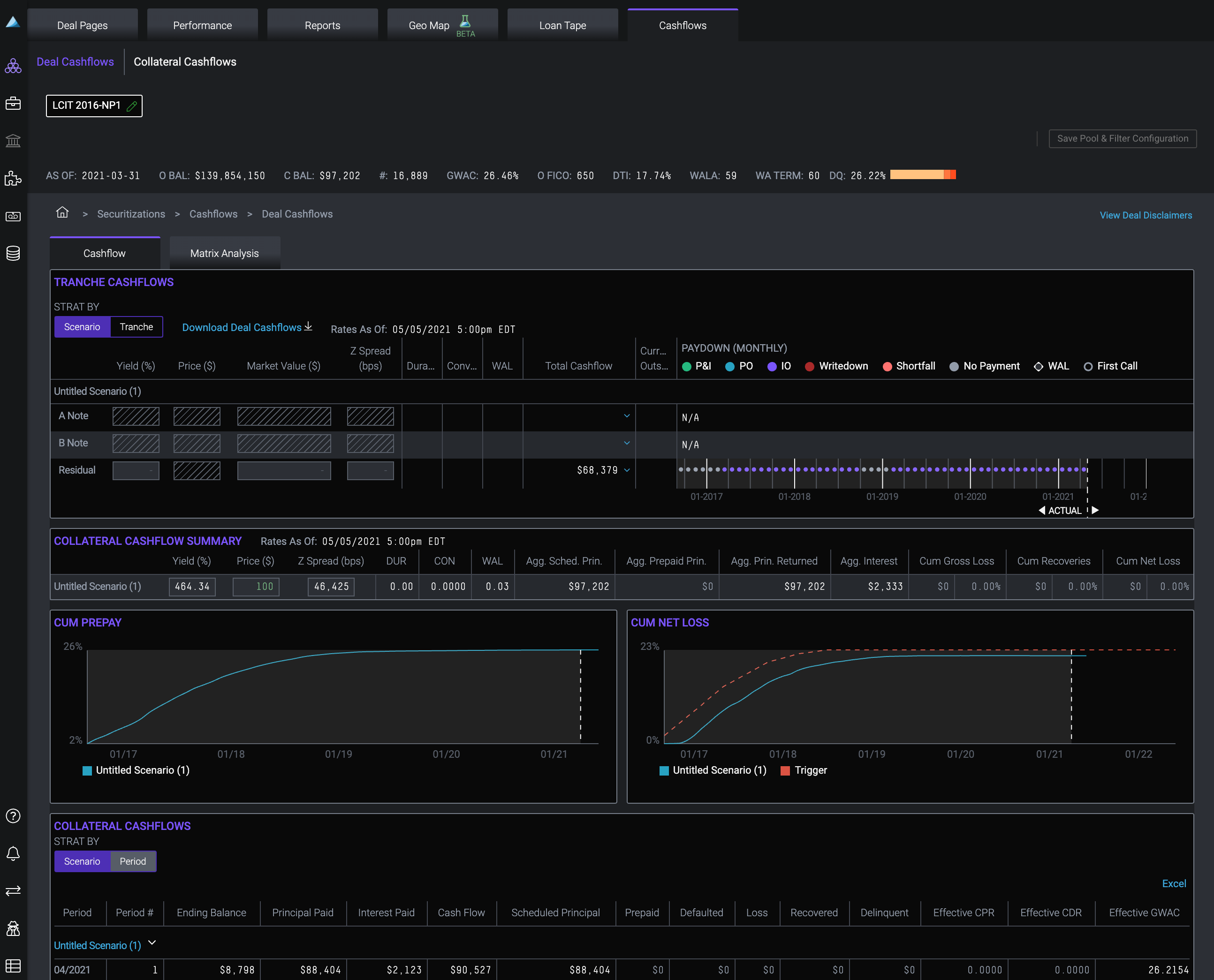 - Efficiently research, compare, and monitor the collateral composition and performance of whole loan and bond investments