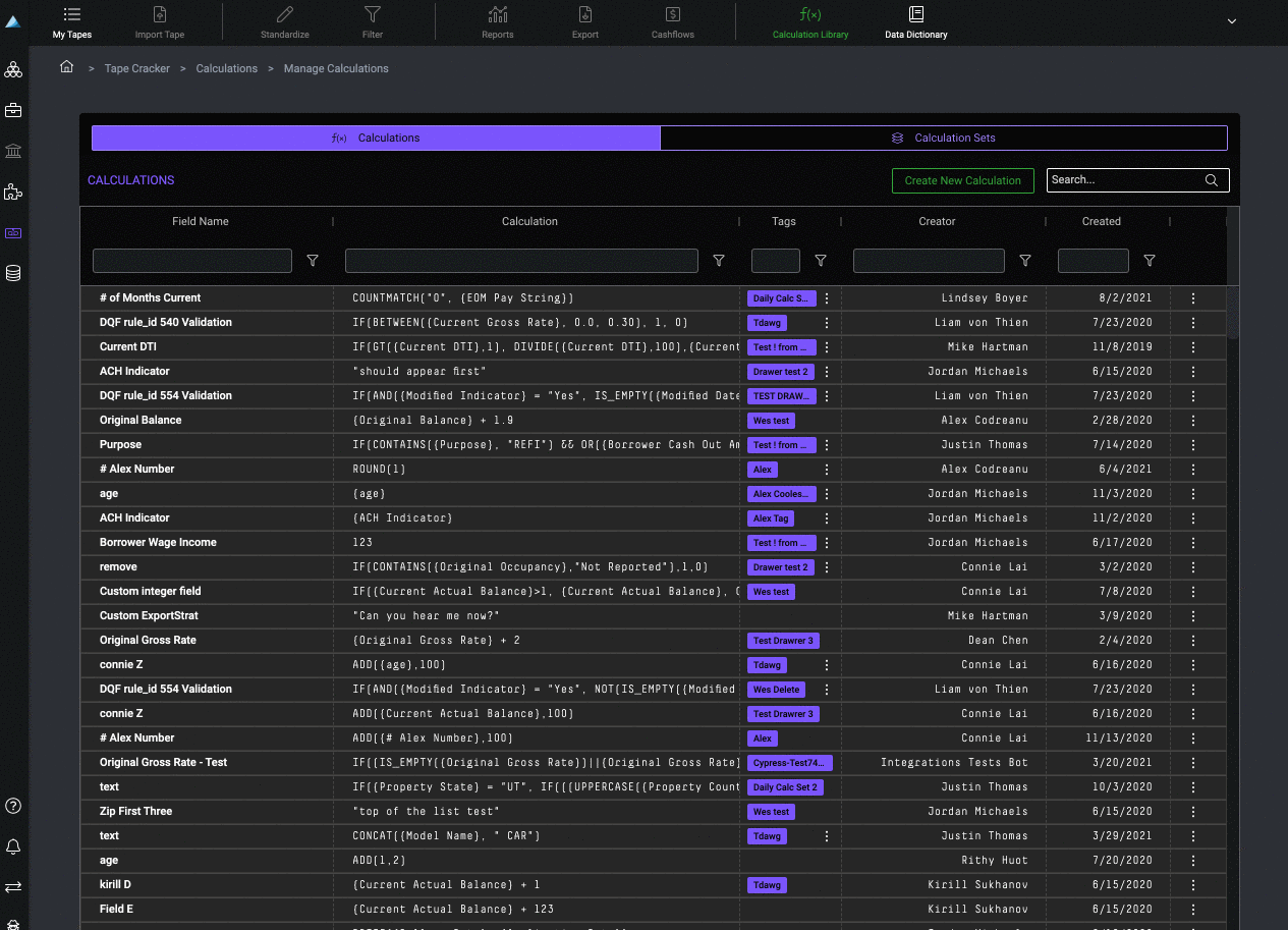 Tags have been renamed Calculation Sets to better reflect the expanded capabilities. Create and edit calculation sets from the Calculation Library; simply select your desired calculations and establish the order in which they should run. You can then run your saved sets when bulk applying calculations within Standardize.