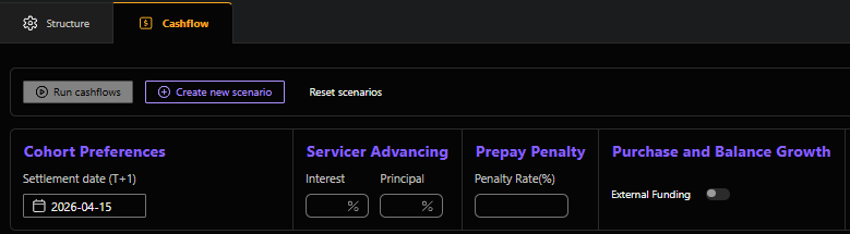 Additionally, in DealStudio, users have an "External Funding" toggle to finance both inputs with principal collections: